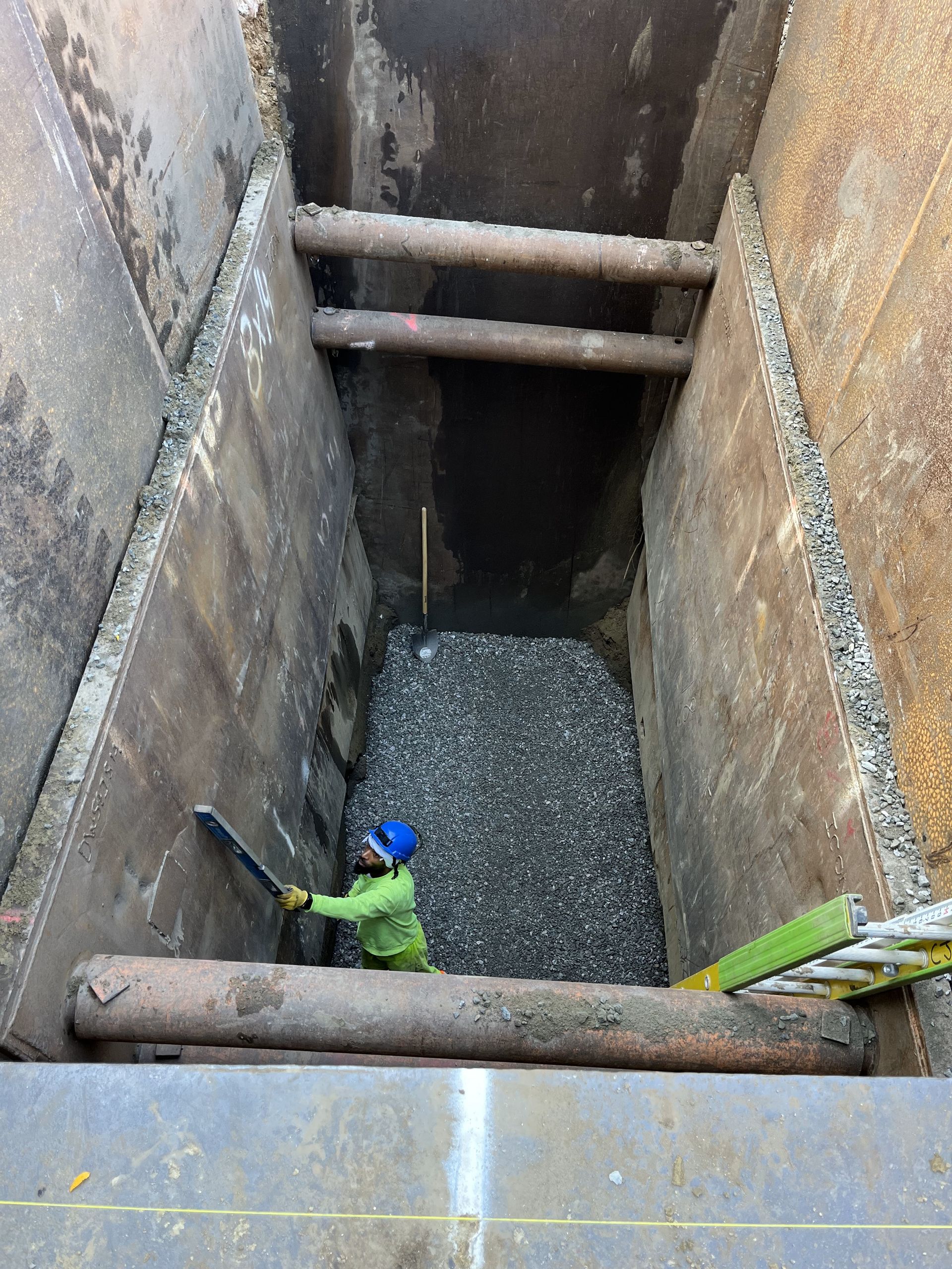 2. A woefully inadequate storm drain system at a depth as low as 17 feet which is being replaced by properly sized pipes which are adequate to handle current and future flows. The new pipes are 4 times larger than the current pipes. The new enlarged pipes also redirect the water away from the areas on Parcel A and B to allow for new development and new tax revenue.